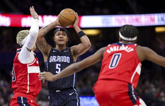 魔术队首发:弗朗茨-瓦格纳、保罗-班凯罗、杰伦-萨格斯、安东尼-布莱克、格加-比塔泽